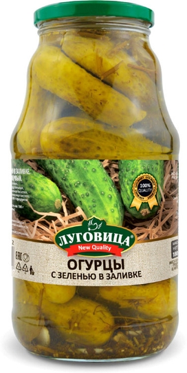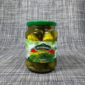 Огурцы Луговица корнишоны маринованные с зеленью 370 гр