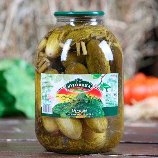 Огурцы консервированные с зеленью в заливке ГОСТ 720 мл